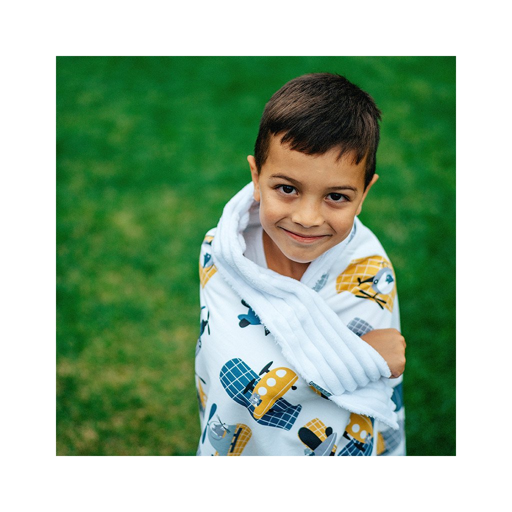 Z jedné strany jsou plyšové pruhy a z druhé krásný dětský bavlněný potisk - tento je z designerské kolekce ve spolupráci s Tufka.cz