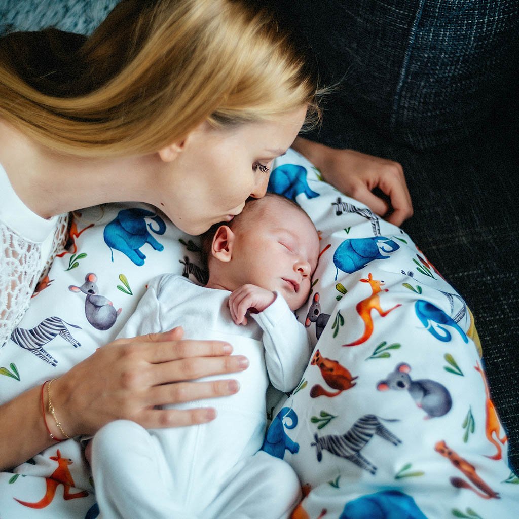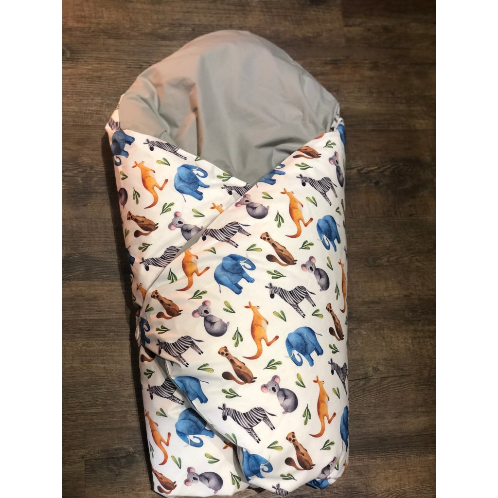 Péřová zavinovačka - Wild animals šedá bavlna