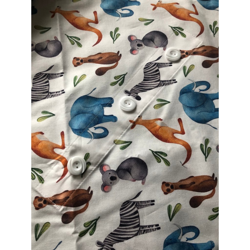 Zapínání na knoflík nebo pásek, vnitřní část jednobarevná bavlna, z venku bavlněný potisk.